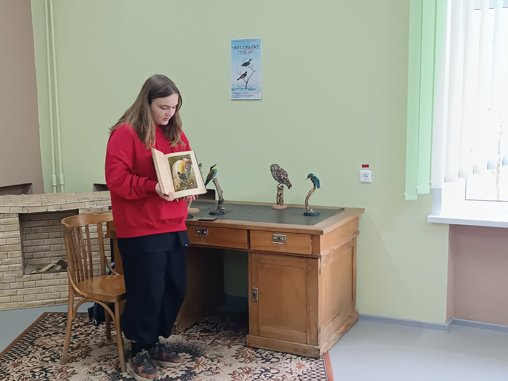 В ходе мероприятия Полина ответила на множество вопросов о диких и домашних пернатых, сохранении их видового разнообразия и численности, взаимодействии с человеком, об истории мастеров-таксидермистов, особенностях процесса изготовления чучел, профессиональных конференциях и конкурсах. В поиске информации Полина часто обращается к книгам нашей библиотеки.